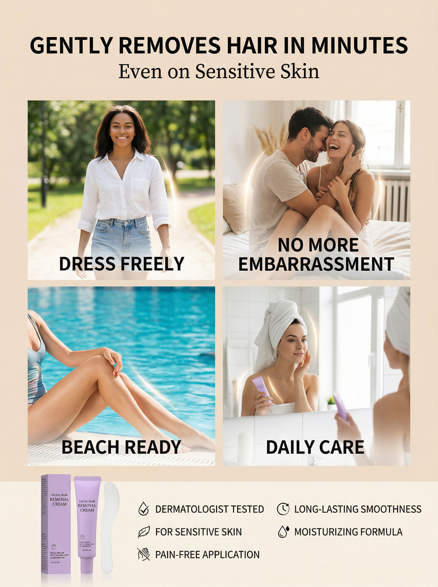 💫Long-lasting smooth hair removal cream, 97% non-irritating and leaves no dark spots, 2-in-1 hair removal and skin care